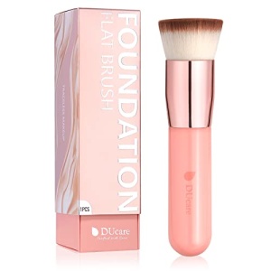 DUcare Foundation Brush for Liquid Makeup, Flat Top Kabuki Synthetic Professional Makeup Brushes Liquid Blending Mineral Powder Buffing Stippling Makeup Tools, Pink