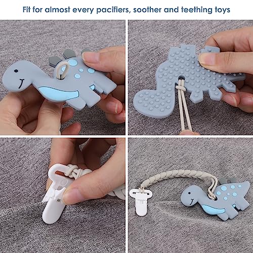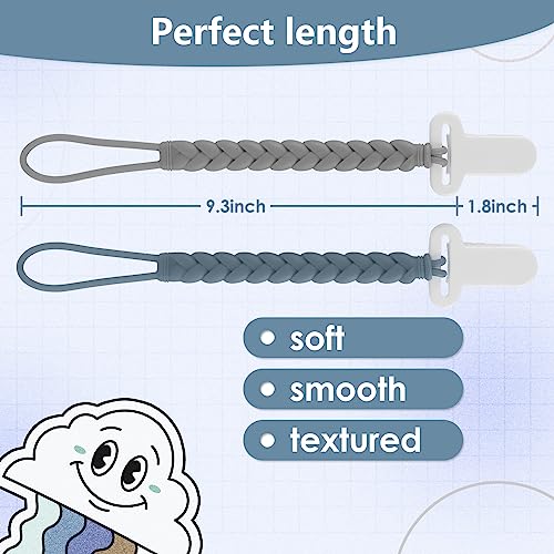4-Pack Silicone Pacifier Clips with a Woven Rope Shape for Baby Boys and Girls – Flexible and Rust-Free Holders for Teething Relief and Baby Essentials, Safe for Newborns (Grey)