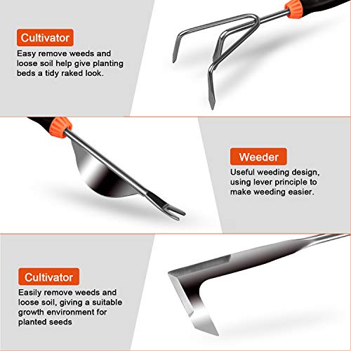 • GARDEN ACCESSORIES – 8 hand tools are very useful for all your garden needs, such as digging, weeding, loosening soil, aerating, and transplanting. Buying our gardening tools kit, you can get everything, just take our gardening kit home.