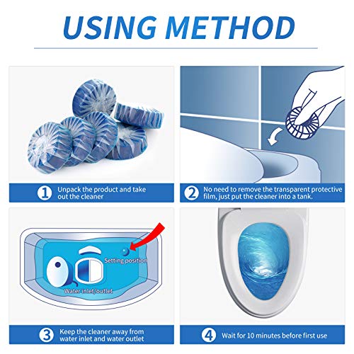- EASY OPERATION: Vacplus toilet tank cleaner tablets are super easy to use. Simply take out one tablet from the box and drop it into the toilet tank. Then, leave it to dissolve sufficiently for at least 30 minutes until the water turns blue before flushing.